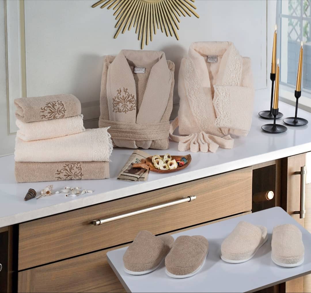 • کلاه و دمپایی حوله ای